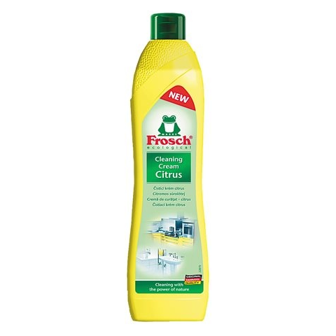A Súrolókrém, 500 ml, FROSCH, citrom (KHT437) A Frosch folyékony citrusos súrolószer hatékonyan távolítja el a zsíros szennyeződéseket, a vízkő- és szappan lerakódásokat minden kerámia, zománc, rozsdamentes acél és üvegkerámia felületről. Környezetbarát,