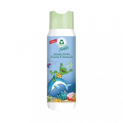 Frosch tusfürdő és sampon gyerekeknek 300 ml-es kiszerelésben. A termék B5 provitaminnal dúsított formulája gyengéden tisztítja a gyermekek érzékeny bőrét, véd a kiszáradástól. Értékes búzafehérje tartalma táplálja a hajat és könnyebb kifésülhetőséget biz