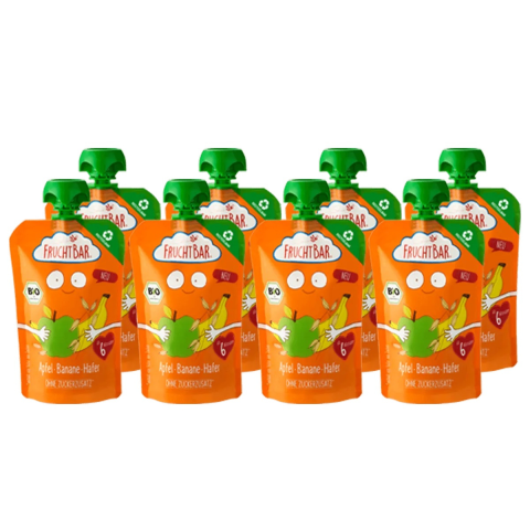 1 kép FRUCHTBAR Bio Alma, banán, zab 6hó 8x100g (100%-ban újrahasznosítható csomagolás!)