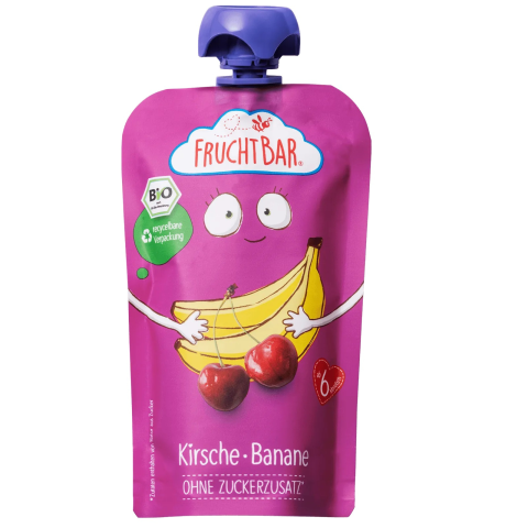 1 kép FRUCHTBAR Bio Cseresznye, banán 6hó 120g (100%-ban újrahasznosítható csomagolás!)