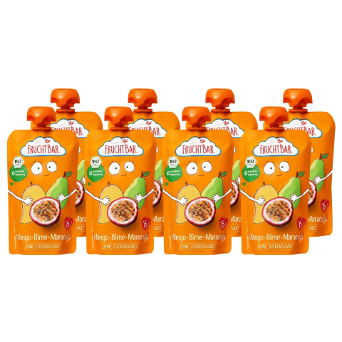 1 kép FRUCHTBAR Bio Mangó, körte, maracuja 6hó 8x120g (100%-ban újrahasznosítható csomagolás!)