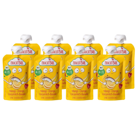 1 kép FRUCHTBAR Bio Mangó, narancs, banán, kókusztej 6hó 8x100g