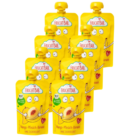1 kép FRUCHTBAR Bio Mangó, őszibarack, banán 6hó 8x100g