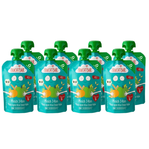 1 kép FRUCHTBAR Bio Őszibarack 3 gabona 6hó 8x100g (100%-ban újrahasznosítható csomagolás!)