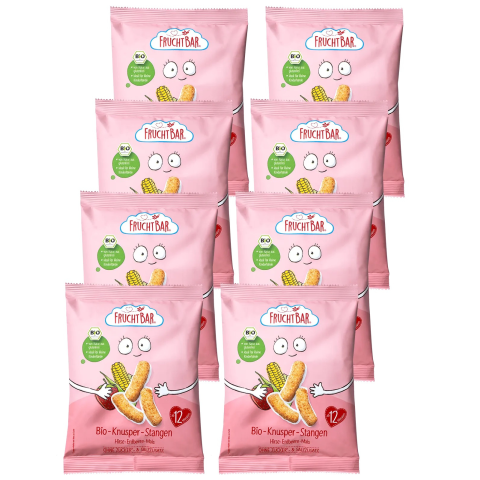 1 kép FRUCHTBAR Bio Ropogós rudak eperrel, kukoricával és kölessel 12hó+ 8x30g