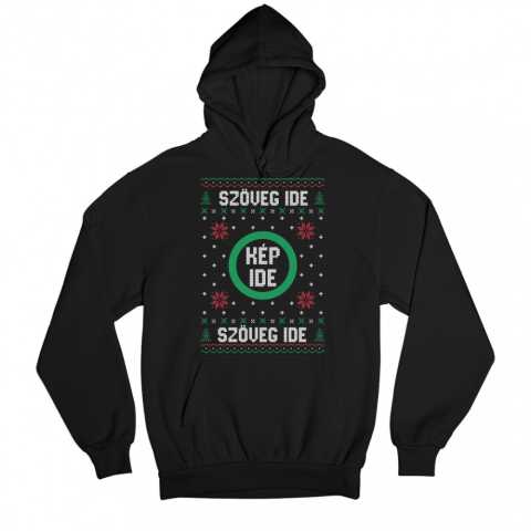 1 kép Fruit of the Loom, Kariban Csúnya Karácsonyi Kapucnis Pulóverek - Egyedi szöveggel és képpel