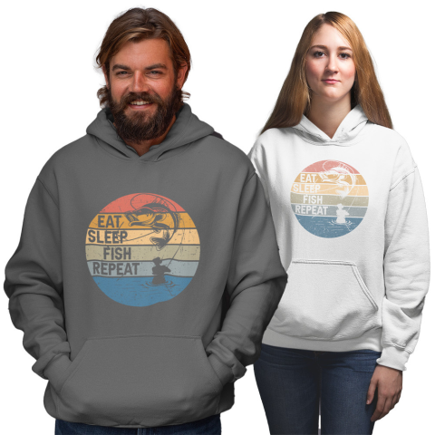 1 kép Fruit of the Loom, Kariban Eat Sleep Fish Repeat - Unisex Pulóver