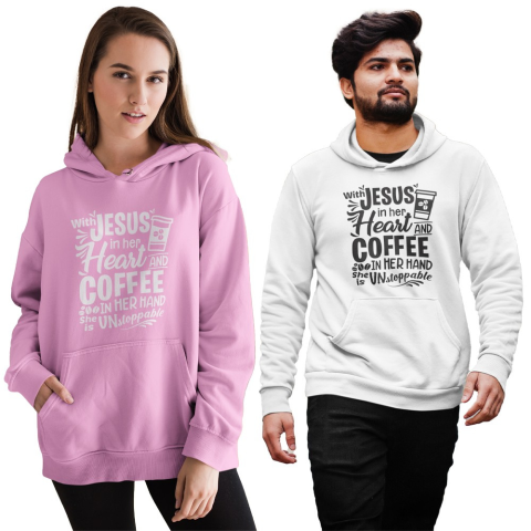 1 kép Fruit of the Loom, Kariban Jézussal és kávéval megállíthatatlan vagyok - Unisex Pulóver