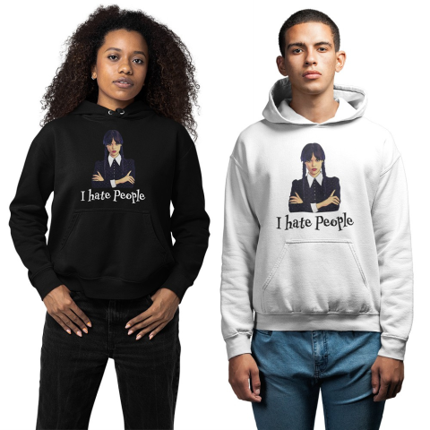 1 kép Fruit of the Loom, Kariban Wednesday I hate people - Unisex Kapucnis Pulóver