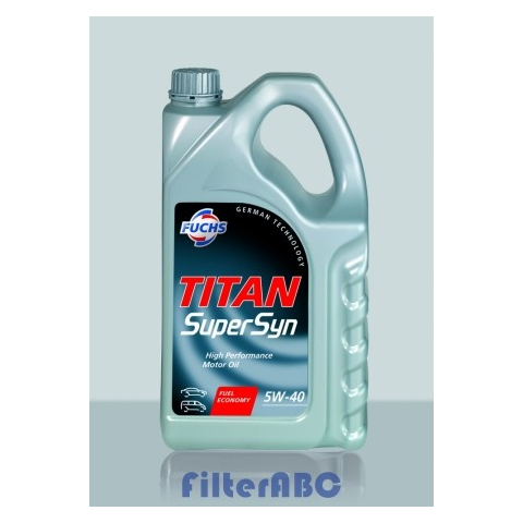 - Ultra nagy teljesítményű, teljesen szintetikus motorolaj személy- és kis-haszongépjárművek részére növelt olajcsere periódussal. A modern és megbízható adalék technológia biztosítja a legjobb teljesítményt minden üzemelési körülmény között, optimális hidegindítási tulajdonságok és alacsonyabb olajfogyasztás jellemzi. A Fuchs Titan SuperSyn 5W-40 kiváló hidegfolyási tulajdonságai biztosítják a gyorsabb kenőfilm kialakulást a motor minden alkatrészén. Csökkenti a súrlódást és a kopást, ami által erőteljesen csökken az üzemanyag fogyasztás. Garantálja a motor tartósságát mind városi, mind pedig országúti használat esetén.