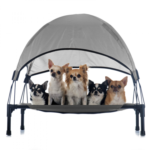 Kényelem stílussal, kutyafekhely napellenzővel Tetős kutyaágyunk nemcsak optimális kényelmet, hanem stílusos pihenést is kínál kutyájának a szabadban. Az elegáns szürke harmonikus szín tökéletesen illeszkedik bármilyen környezetbe, míg az innovatív dizájn