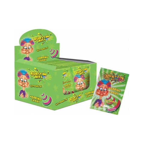 Burstin Bits pattogós cukor 7 g – Watermelon (dinnyés) íz Rövid leírás A Burstin Bits pattogós cukor egy mini, 7 g-os nassolnivaló, amely minden harapás után pezsdítő pattogó élményt nyújt. A dinnyés íz vidám, nyárias frissességet ad, miközben az apr