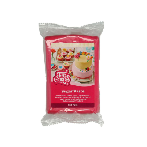 FunCakes fondant, sötét pink, 250g A Hot Pink cukormassza gyönyörű sötét rózsaszín színű és finom vanília ízű. Tökéletes a torta bevonására és formák kivágására. Használat előtt jól gyúrja át, és vékony porcukorrétegre hengerelje ki. A cukorpasztát mod