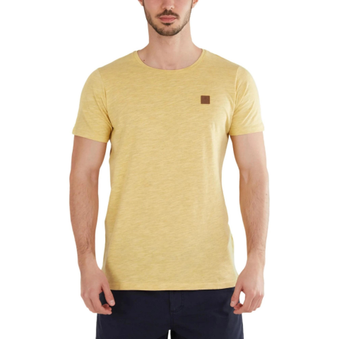 Fundango férfi A műbőr részletekkel díszített Fundango Jaggy Structured Tshirt férfi póló a márka sportos, lezser stílusú darabja. Puha tapintású, könnyű, kiváló szellőzőképességekkel rendelkező pamutkeverék anyaga bármilyen időben, bármilyen helyzetben garantálja maximális komfortod. A könnyen kombinálható, melange mintájú póló az irodában töltött napokon és outdoor kalandjaidon is nagyszerű társad lesz. Regular Fit szabása és kerek nyakrésze minden