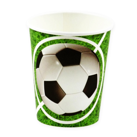 6 darabos focilabda mintájú papír pohár, melynek a segítségével minden kis futballrajongónak egy igazán különleges világot varázsolhatunk a születésnapi partijára, de akár egy baráti társasággal eltöltött meccs nézés alkalmával is hasznos kiegészítője leh