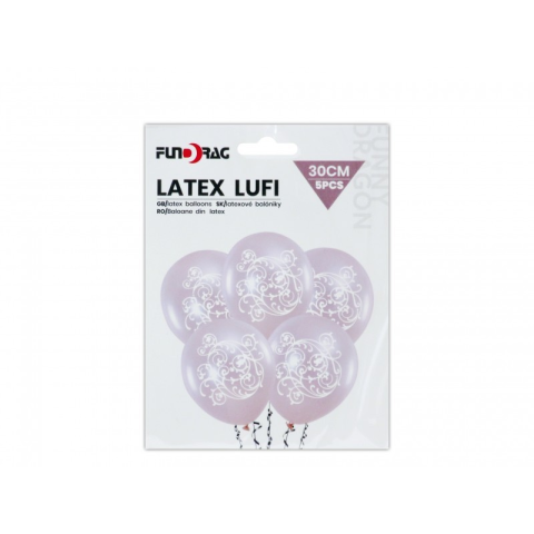 Fundrag Esküvői lufi ekrü fehér vékony mintás 30 cm, 5 db/csomag