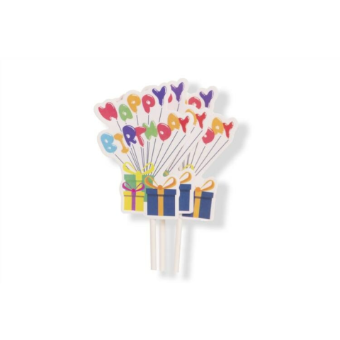 Díszítsd a szülinapi tortát ezzekkel a Happy Birthday feliratos ajándékcsomagos tortabeszúrókal!