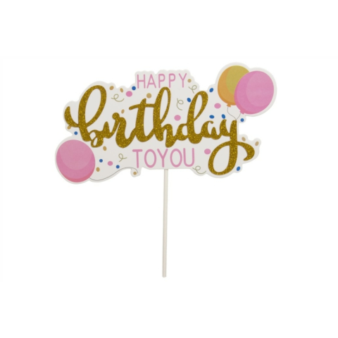 Dobd fel Te is az egyszerű tortákat ezzel a Lufis rózsaszín és arany Happy Birthday szülinapi tortadísz beszúróval!