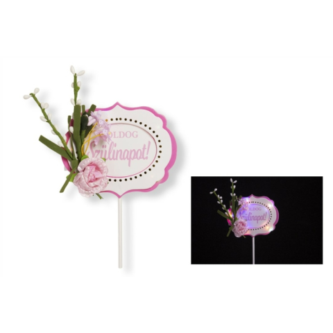 Ez a Virágos Boldog szülinapot feliratos beszúró tortadísz LED világítással remekül fog mutatni minden tortán!