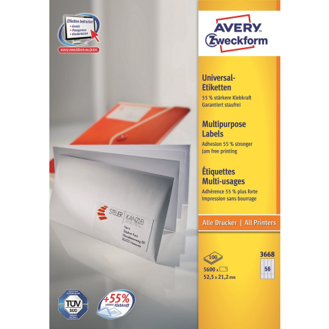 Fűzfői Papírmanufaktúra Kft. Avery Universal etikett fehér (56) 52,5x21,2mm etikett 1 kép