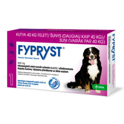 Fypryst Spot On kutya L – Rácsepegtető oldat kutyák bolha (Ctenocephalides spp.) vagy kullancs (Rhipicephalus fajok, Dermacentor fajok, Ixodes fajok) okozta fertőzésének megelőzésére és gyógykezelésére. Fypryst Spot On kutya L – Rácsepegtető oldat kuty