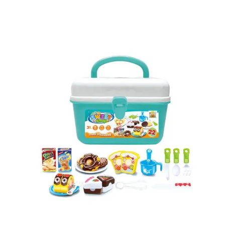 A G21 gyerek koffer egy egész cukrászdát rejt magában! A torták eladására való tartozékokkal garantáltan örömet szerez minden kis cukrásznak. A gyönyörű kék műanyag koffer egy bolt másolatát tartalmazza tortákkal és egyéb édességekkel. A G21 gyerek kof