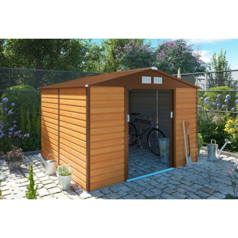 1 kép G21 Kerti ház, Szerszámtároló, 277 x 255 cm, acéllemez, GAH 706 barna (fa hatású) (63900554)