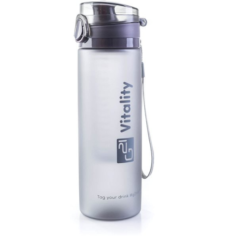 Kulacs - 0,6 l űrtartalom, szíj és kinyitódás elleni védelem, BPA-mentes és teaszűrővel, anyaga műanyag, alkalmas fitnesshez, magassága 22 cm, átmérője 6,5 cm, szürke kivitel A remek G21 ivókulacs 0,6 l térfogattal rendelkezik, és strapabíró, ütésálló, mégis könnyű műanyagból készült. Káros vegyületektől mentes, így biztonságos az ital tárolásához. Ízesített, frissítő ital