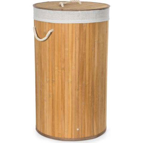 G21 szennyeskosár 55 l, bambusz kerek fehér kosárral (6355514) bútor termékleírás