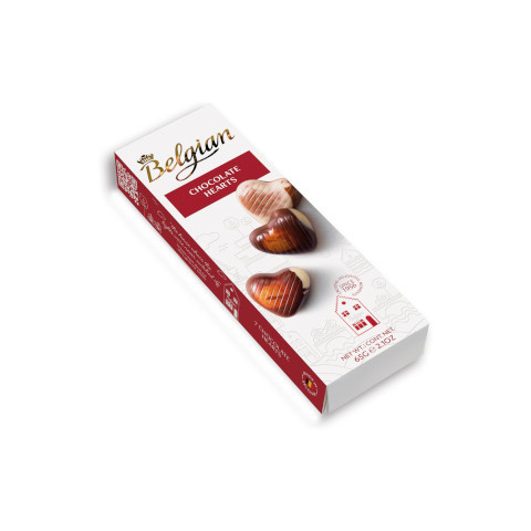 Belgian 65g Chocolate Hearts Hazelnut Prémium belga minőség egyetlen harapással a szívedhez. A Belgian 65g Chocolate Hearts Hazelnut a gazdag kakaó és a mogyoró praliné töltelék tökéletes egyensúlyát kínálja, szív alakú formában, hogy a desszertélmén