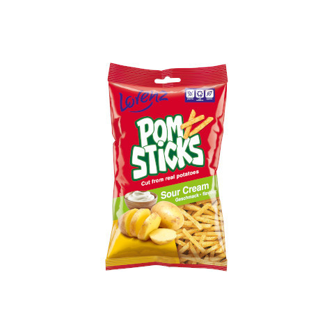 Lorenz Pomsticks 85 g – Sour Cream-tejfölös Ízletes ropogás és savanykás-tejfölös ízvilág egyben — mindez egy praktikus 85 g-os kiszerelésben. A Lorenz Pomsticks Sour Cream-tejfölös változata ideális uzsonnára, irodai snackként vagy esti film mellett