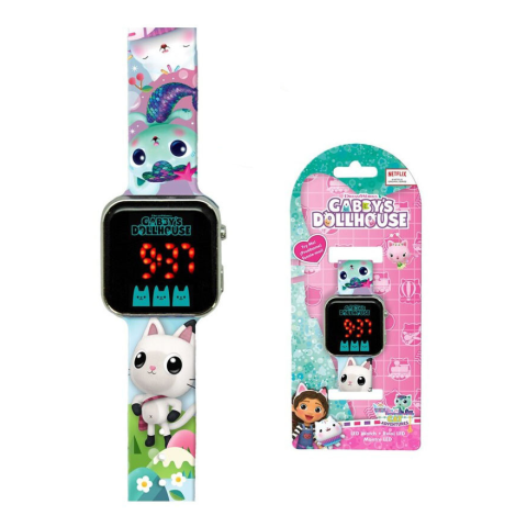 Gabby's Dollhouse, Gabi babaháza digitális LED karóra Méret: 21 cm hosszú, kijelző 3x3 cm Csomagolt termék, ajándéknak is kitűnő!