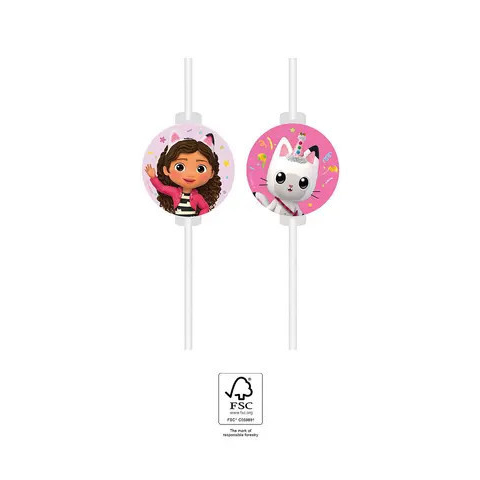 Gabby's Dollhouse, Gabi babaháza papír szívószál, 4 db-os szett FSC 4 darab/csomag FSC (Forest Stewardship Council)