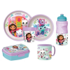 Gabby's Dollhouse étkészlet micro szett pohárral: Praktikus készlet, mely nem törik és mintájának köszönhetően a gyermekek szívesen esznek majd belőle. A készlet tartalma: 1 db mélytálka (Mikrózható műanyag) 1 db lapostányér (Mikrózható műanyag) 1 d