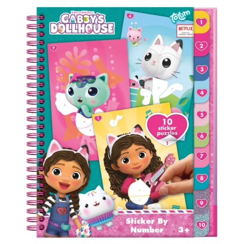 Gabby's Dollhouse, Gabi babaháza puzzle matrica és színező szett Méret: 24x19 cm Tartalma: - 10 db kép, melyeket a megadott matricákkal kell kiegészíteni - 10 db színezhető kép 3 éves kor alatt nem ajánlott!