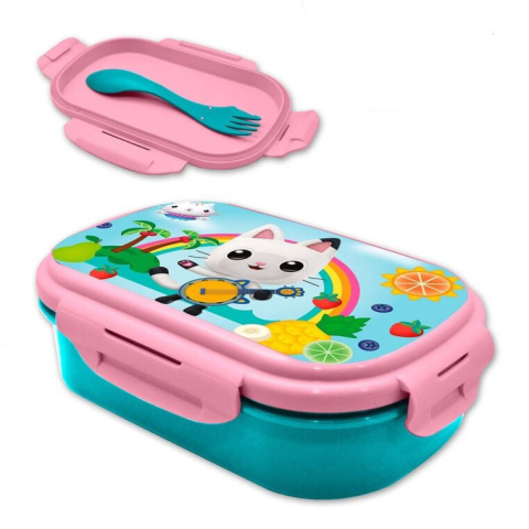 Gabby's Dollhouse, Gabi babaháza szendvicsdoboz + evőeszköz Anyaga: műanyag BPA mentes. Méret: 21x14x6 cm