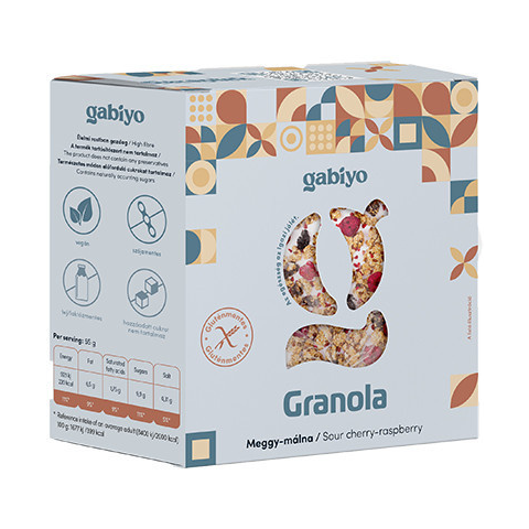 A meggy-málna a legújabb granola változatunk, melynek megalkotását az ízvilágában azonos- és nagy népszerűségnek örvendő lekvárunk ihlette. A sötétpiros színű, aszalt darabkák íze kellemesen édes-savas, mellette a málna aromája jól tud érvényesülni. Ez a