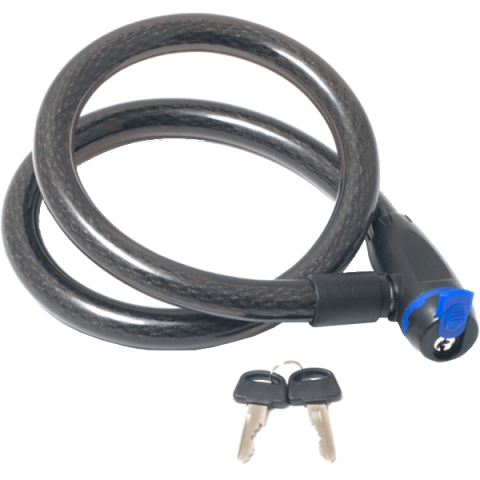 100 cm hosszú, 2 db kulccsal. A zár 10 mm sodronyát bevonat védi.