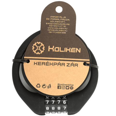 65 cm hosszú, 4 számjegyű kombinációval. A zár 10 mm sodronyát szilikonbevonat védi.