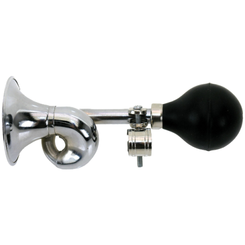 A kerékpár kormányára szerelhető fém kürt.