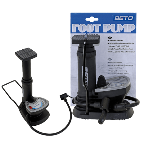 Klasszikus kialakítású dugattyú elvű lábpumpa. A pumpa mérőórával van ellátva, mely segíti a nyomás folyamatos ellenőrzését.
