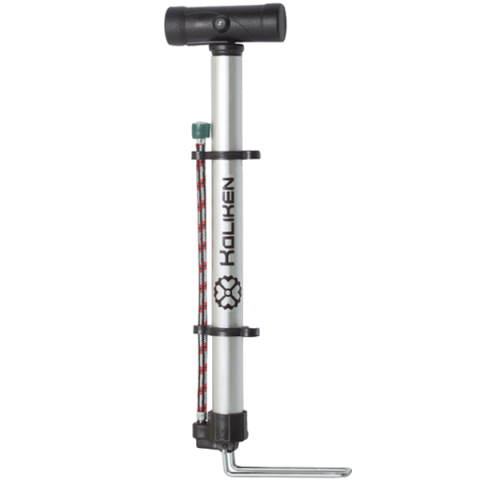 Alumínium, szürke színű pumpa, ideális kerékpár túrázáshoz.