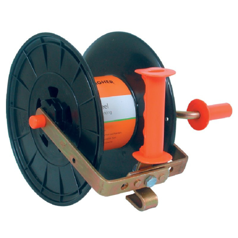 Olcsó orsó a mobil kerítésrendszerhez. Fogantyúval, akasztó kampóval és szorítószerkezettel. Kb. 500 m sodrott huzalhoz. Olcsó orsó a mobil kerítésrendszerhez. Fogantyúval, akasztó kampóval és szorítószerkezettel. Kb. 500 m sodrott huzalhoz.