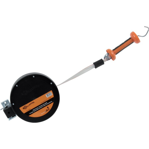 Speciális kapukilincs készlet. A kerítés egyszerű nyitása talajérintkezés nélkül. A 40 mm széles szalag felnyitáskor automatikusan feltekercselődik, 15 méteres fehér szalaggal 15 méteres teljes készletre kiterjeszthető. Kapukilincs és akasztókampó. Haszná