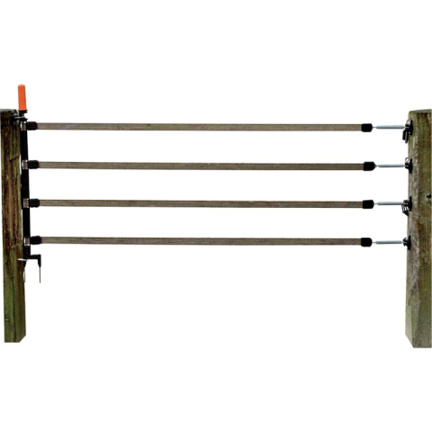 Komplett készlet a szélessávú többvezetékes kapu egyszerű összeszereléséhez. Olcsó megoldás gyakorlatilag minden ajtószélességhez. Ez a 6 méteres 40 mm-es szalaggal ellátott kapukészlet különösen alkalmas lókerítésekhez. Hossz (L): 6 m Max. szalagszélessé