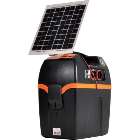 A B200 (12V-os készülék) kombinált készlete szolármodullal és konzollal. Tökéletes és megbízható kombináció az Ön elektromos kerítésének évekig tartó gondtalan áramellátásához. Ez a kombinációs készlet ideális a nagyon napos területekhez. A készlet karban
