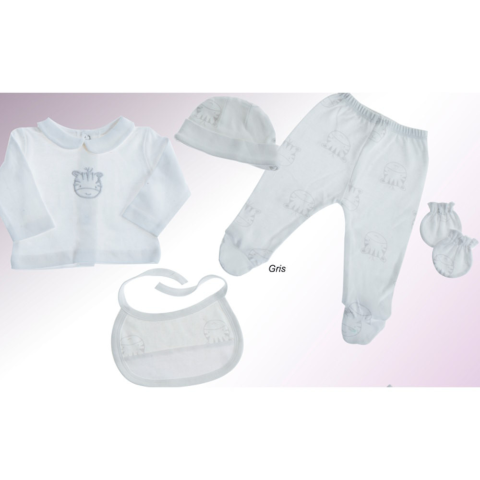 1 kép Gamberritos kiegészítő szett újszülötteknek 5 részes (sapka, kesztyű, nadrág, póló, előke) szürke 10911
