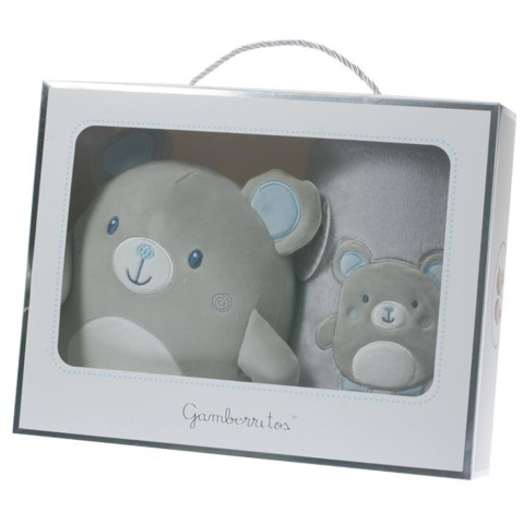 1 kép Gamberritos takaró wellsoft 80x110cm plüss játékkal szürke/kék maci 10757