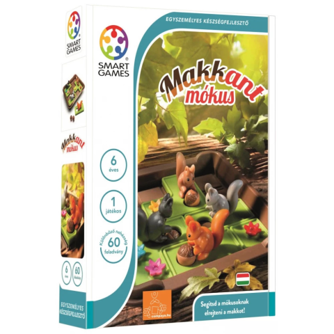 Fedezze fel modern és izgalmas játékainkat, vásárolja meg termékünket kényelmesen webáruházunkból! Smart Games, Makkant Mókusok Közeleg a tél, így érdemes időben elkezdeni a gyűjtögetést a kis mókusoknak!Tartalom: - 4 mókus - 5 makk - 1 virág - Feladv