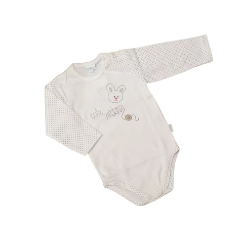 1 kép GAMEX Hosszú ujjú body - Krém - Pöttyós ujjú - Nyuszi hímzéssel - 74